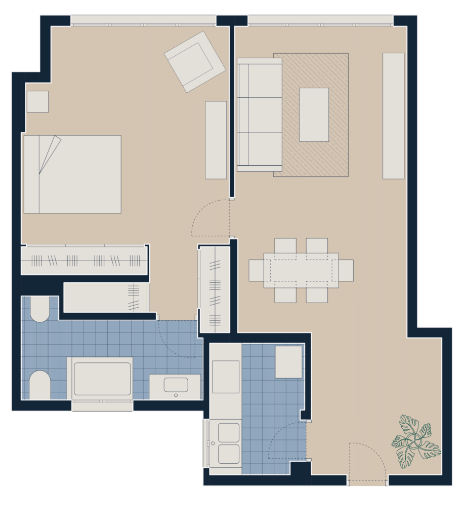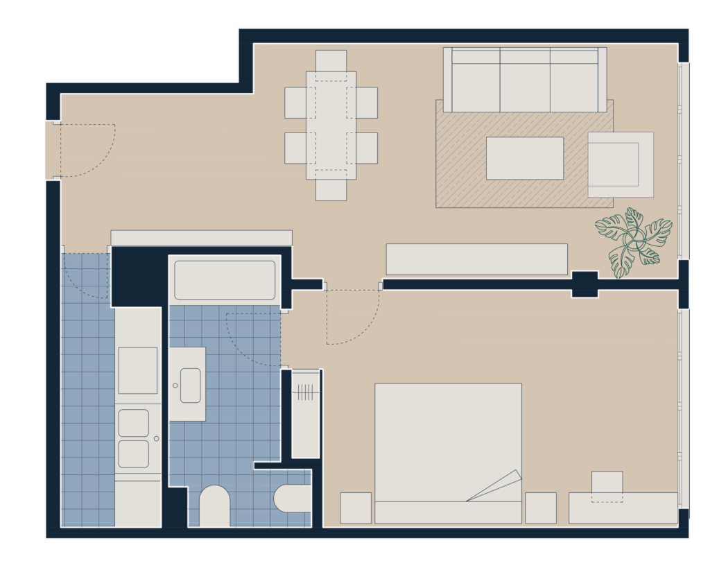 Apartamentos exclusivos de una habitación con una ocupación ideal para 2 personas de entre 62 y 65 m².